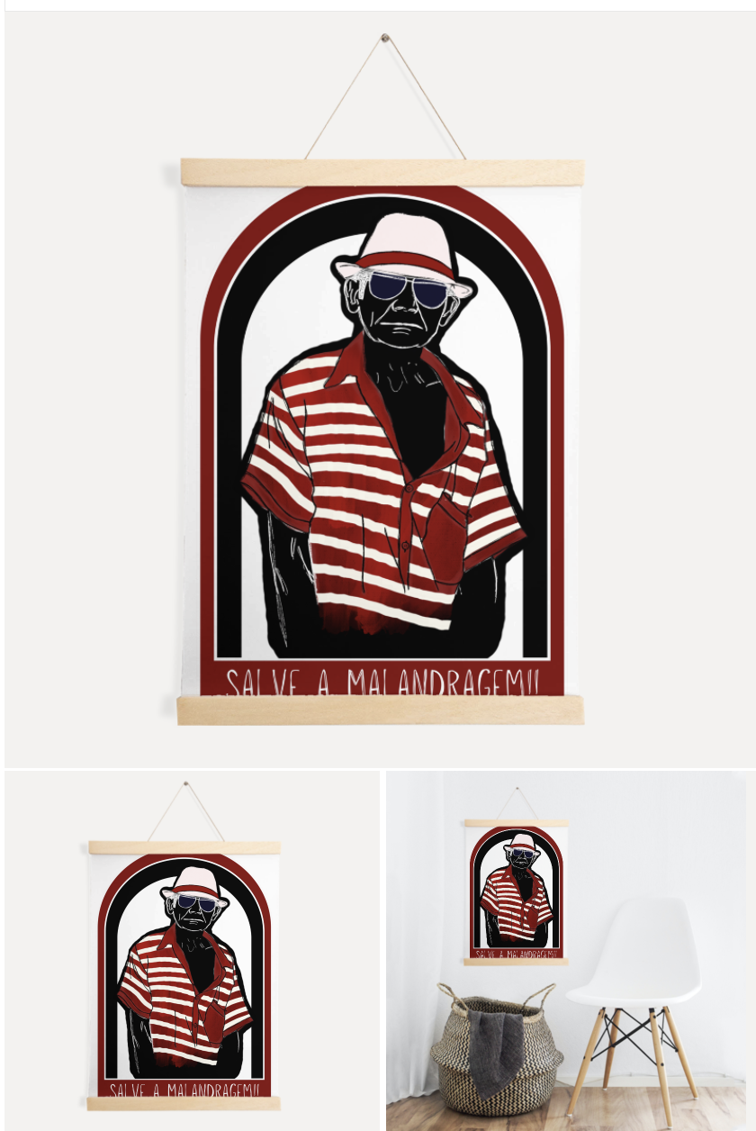 Agora temos diversos produtos como adesivos, boné, almofadas, bolsa, meias, toalhas, canecas, capinha de celular, imã/porta-copo, necessaire, papel de presente, azulejo decorativo…