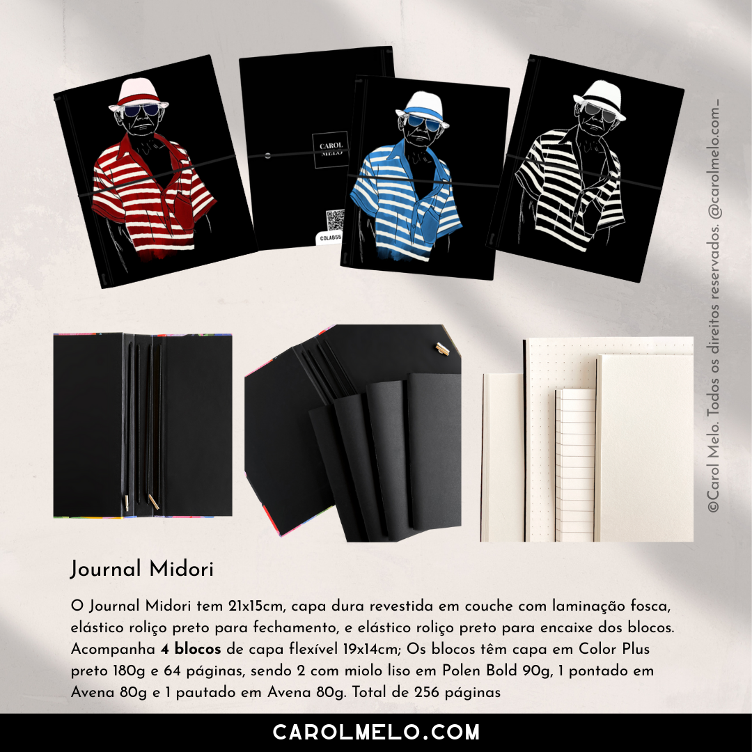 …ainda na linha dos impressos, temos Agenda permanente, Planners semanais, Cadernos, Sketchbook, Bloco de notas, Journal Midori, Bullet Jornal e Sketchbook Canson, com opções de encadernamento tipo brochura ou espiral, papel interno liso, pautado ou pontilhado. - E se ficar dificil pra escolher, indico o Journal Midori que é encadernado com brochura e tem 4 cadernos em 1 - o meu favorito!